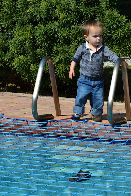He spent most of his time throwing items into the pool (including his shoes) and begging us to retrieve them while trying to himself.